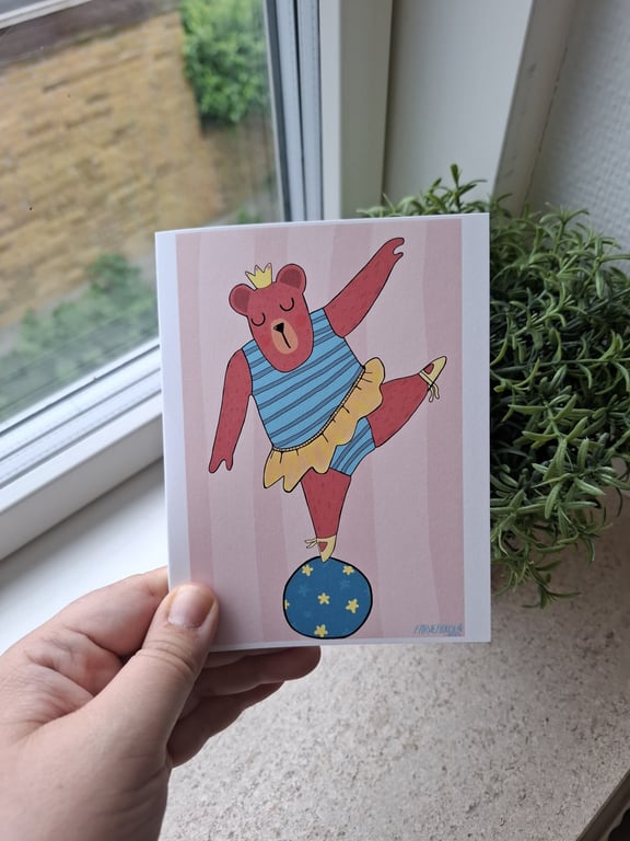 Håndtegnet illustration trykt på foldet Lykønskningskort.