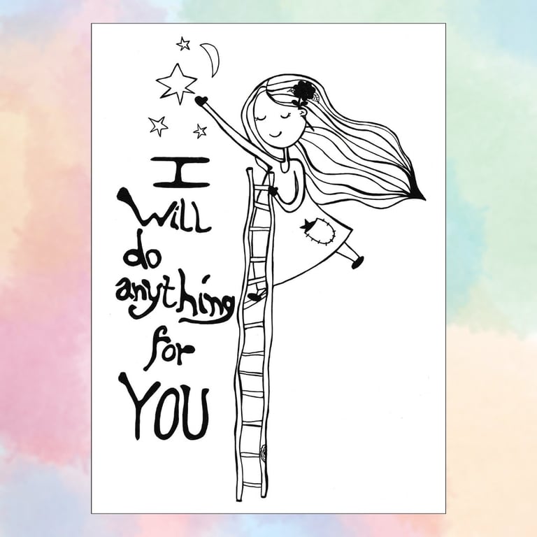 Kortet måler 14,8 x 21 cm (A5) Alle kort er indpakket i cellofanposer. Med dette søde kort, kan du fortælle din udkårne at du virkeligt holder af vedkommende. Du kan endda skrive en lille hilsen på bagsiden, måske et lille kærligheds digt?. Kortet er tegnet I hånden og efterfølgende trykt på tykt kvalitets papir. Og skynd dig, for der findes kun 25 eksemplar.