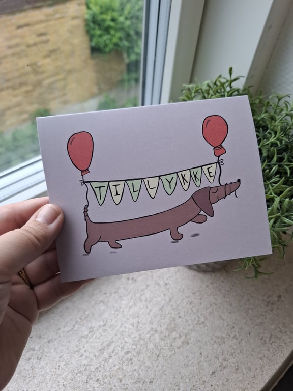 Håndtegnet illustration trykt på foldet Lykønskningskort.